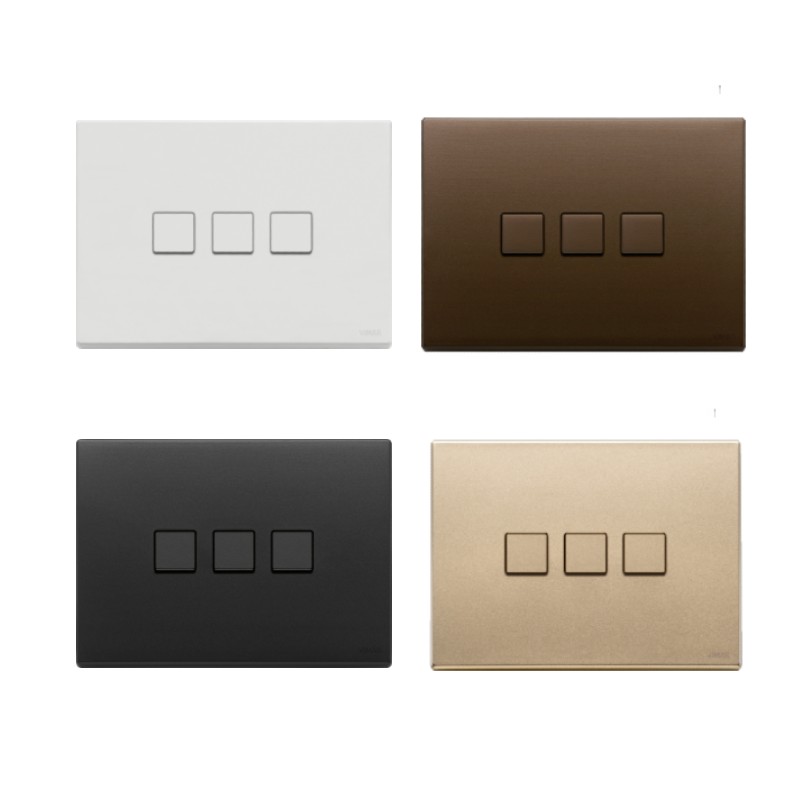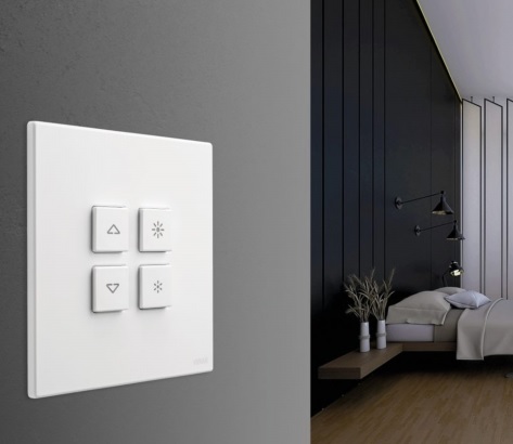 Seria VIMAR Flat to minimalistyczne, płaskie przyciski często stosowane w systemach automatyki budynkowej.
